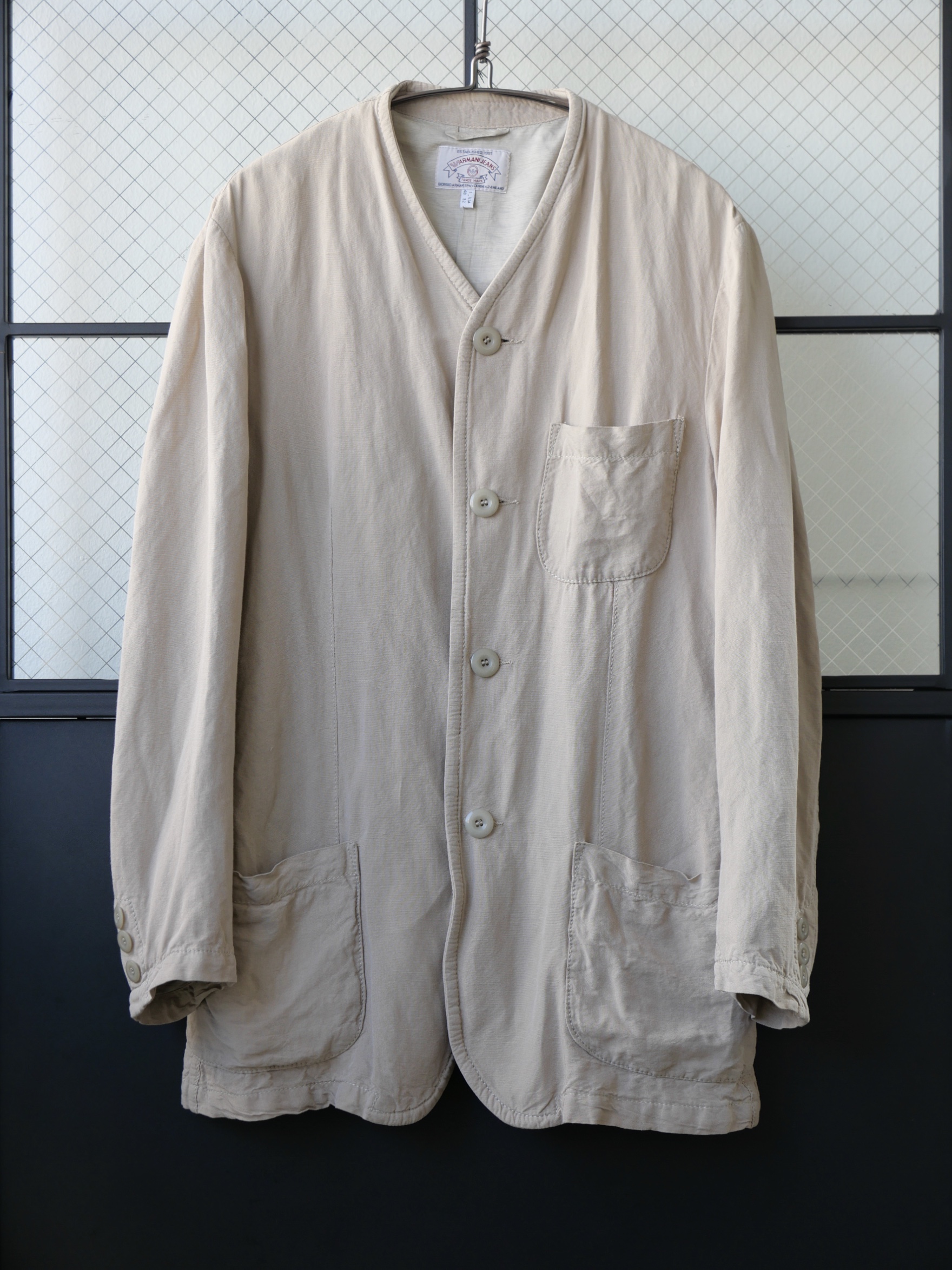 early 1990s Armani Jeans, collarless construction jacket